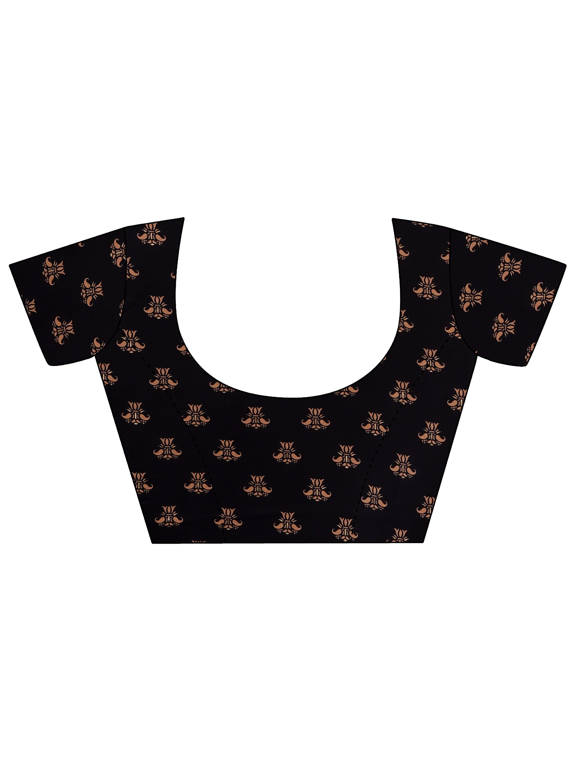Black & Golden Pure Silk Saree with Traditional Motif Print
