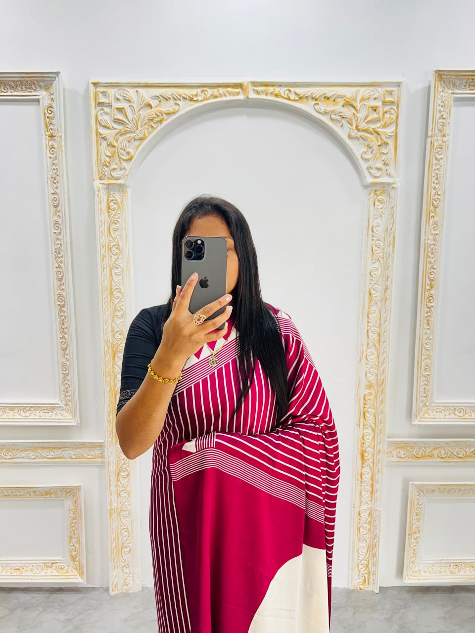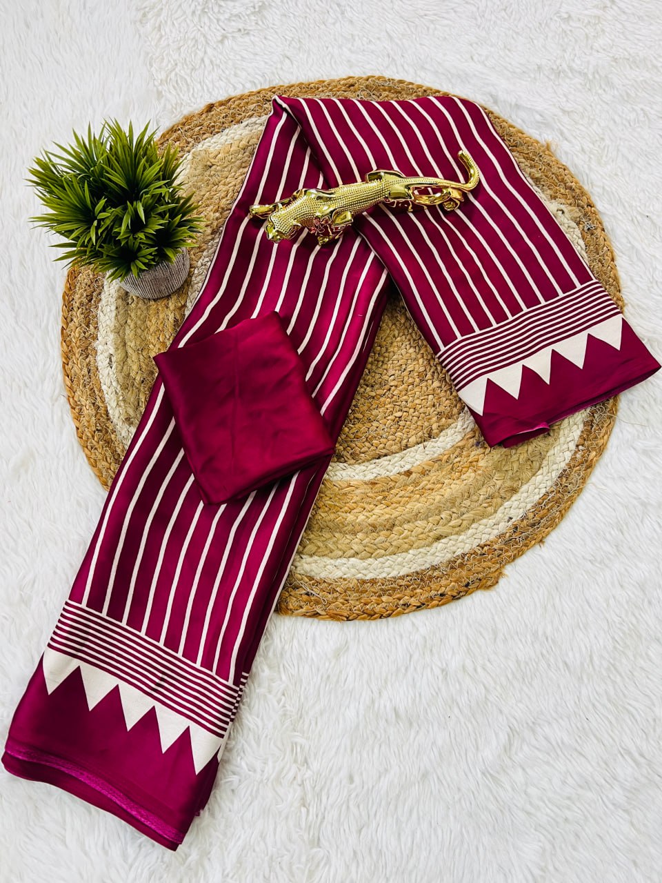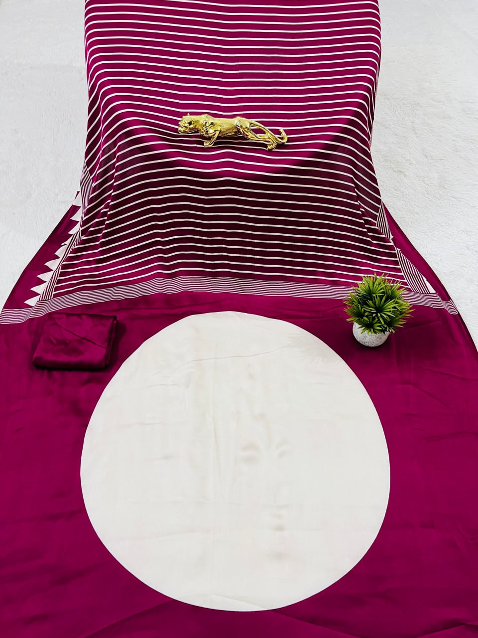 Experience refined elegance with this cherry and white saree, expertly designed for the modern aesthetic. The harmonious blend of deep cherry tones with crisp white creates a balanced, sophisticated palette that flatters diverse complexions and skin undertones. The signature white circular pallu introduces a bold geometric statement, offering visual interest through its clean, contemporary design while maintaining the grace of traditional saree silhouettes. This piece exemplifies thoughtful color coordination and minimalist design principles, making it an excellent choice for professional events, cultural celebrations, or anyone seeking to elevate their ethnic wardrobe with understated luxury. The interplay between the rich cherry base and pristine white accents ensures this saree remains a versatile investment piece that transcends seasonal trends and occasion-specific styling.
