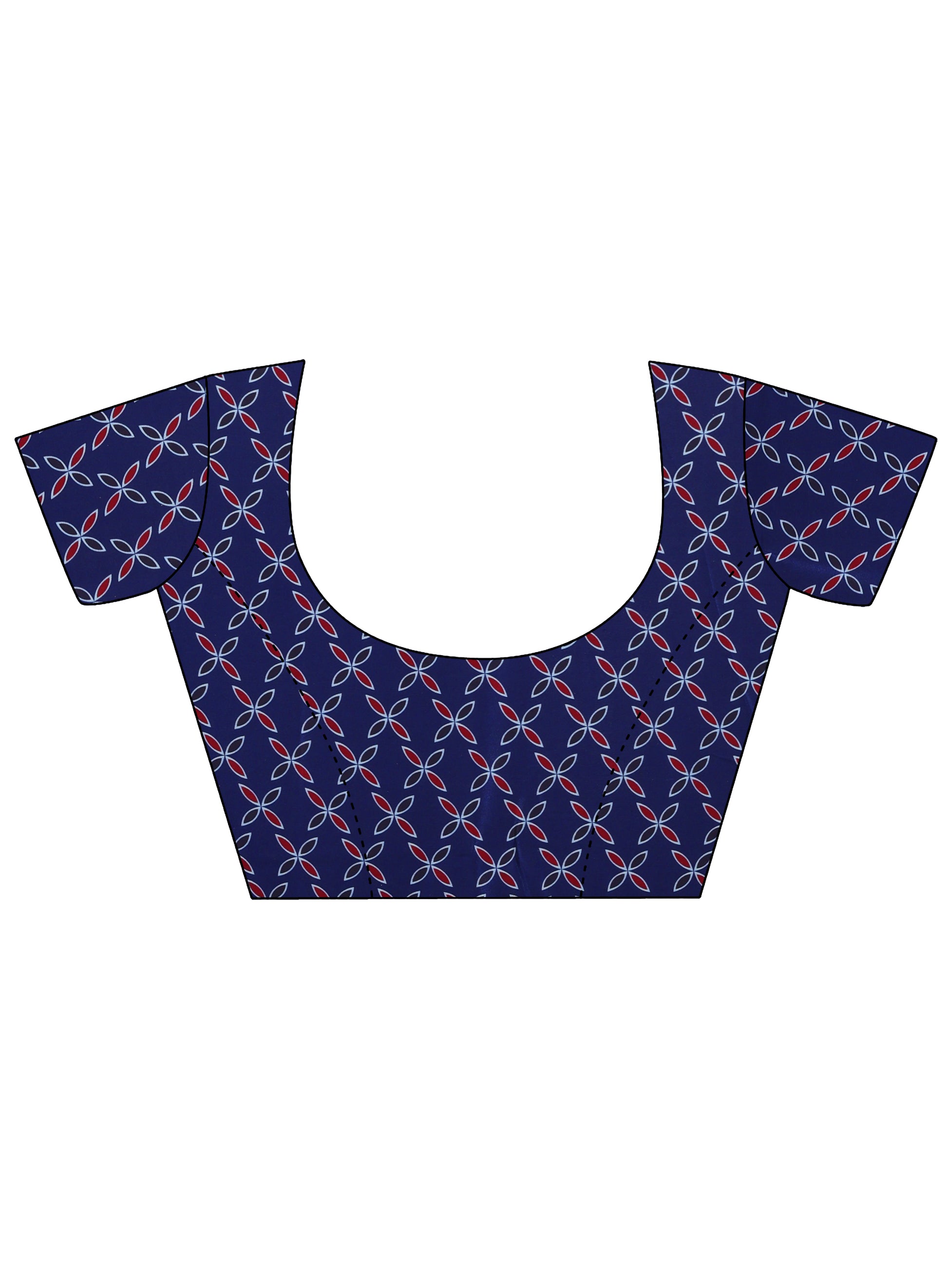 Dark Blue Ajrakh Printed Cottonsilk Saree